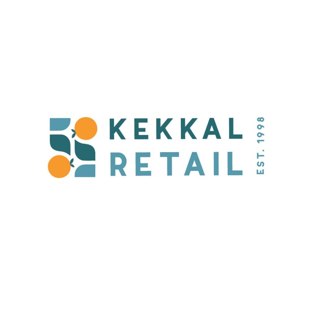 The logo for Kekkal Retail takes shape from the initials from its name “KR” and keeping in mind elements of basic groceries.